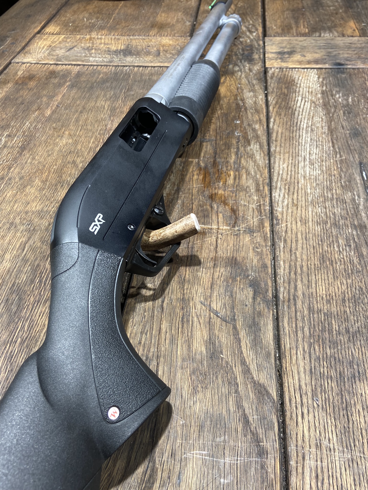 SXP Defender Marine er en populær hagle å ta med på tur. Svært driftssikker og rustbestandig hagle som er lett å plukke fra hverandre og kort 46cm løp, med utskiftbare choker, gjør denne hagla svært populær om du skal nærme deg det våte element.